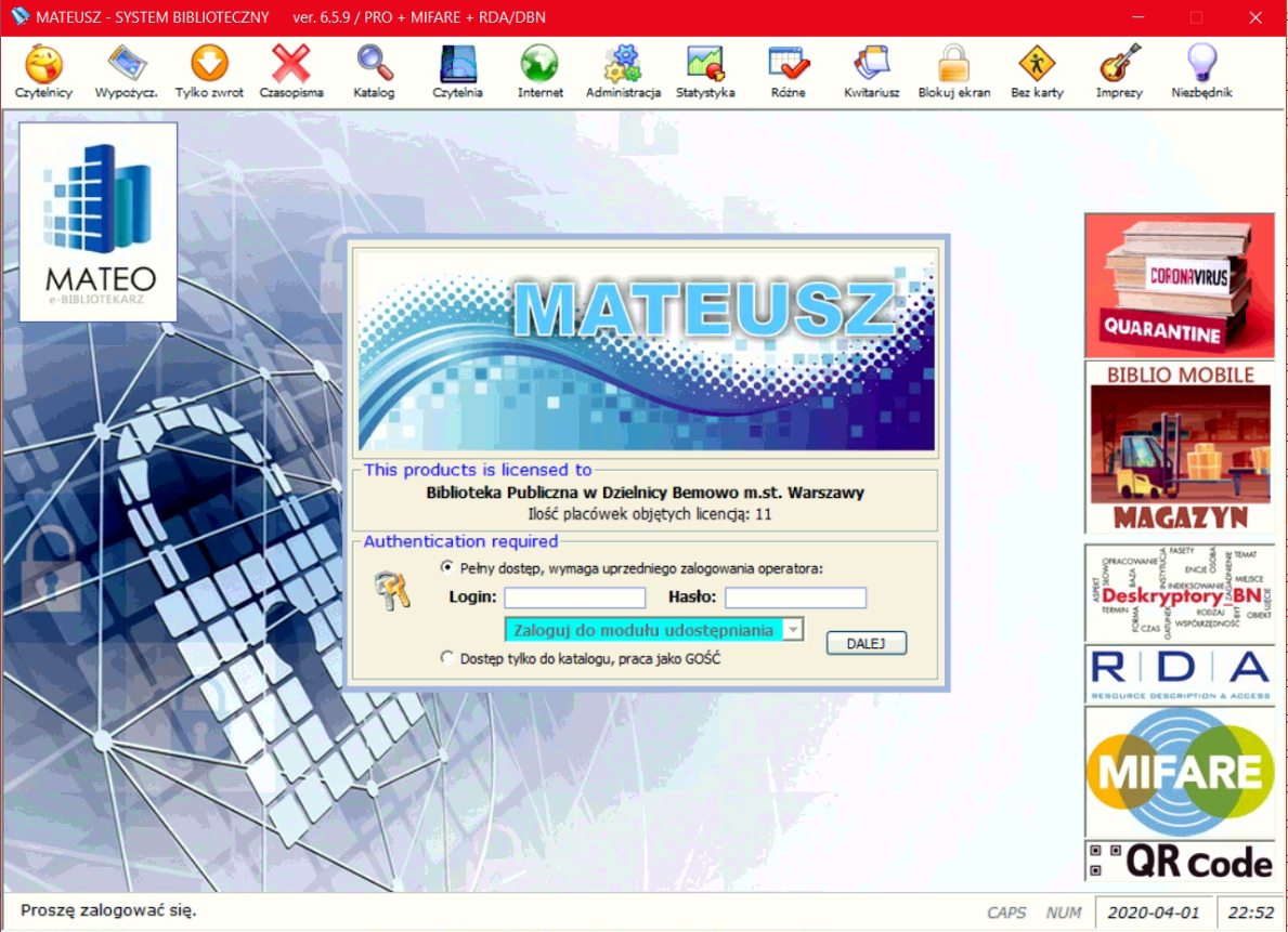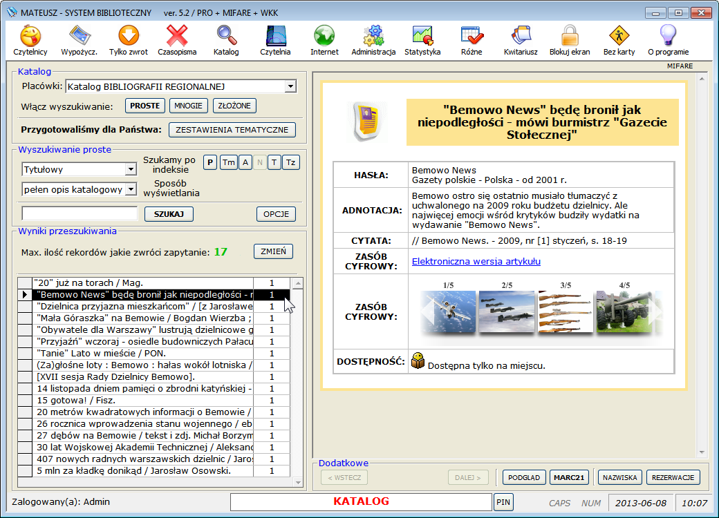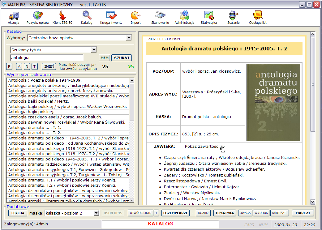zachowaniem standardu MARC21, rejestracji wypożyczeń, prowadzenia i