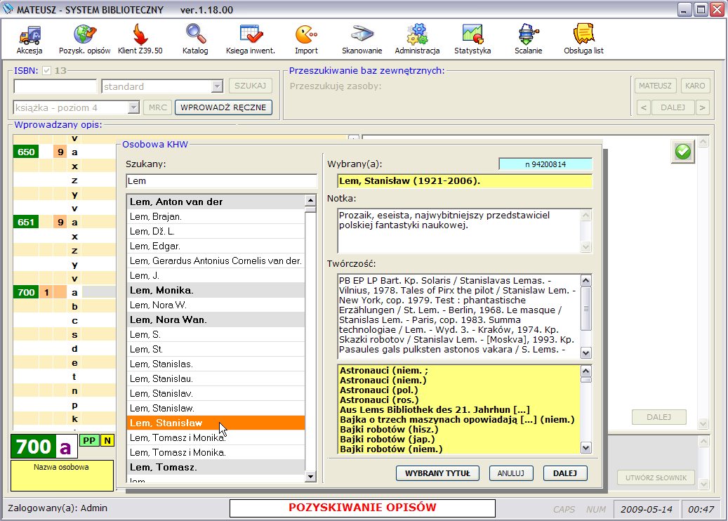 Pełna zgodność z formatem MARC21