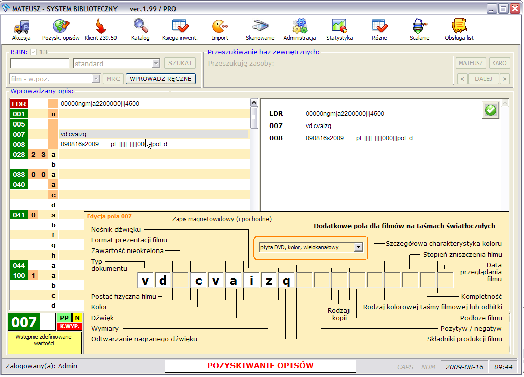 Służy do katalogowania różnych rodzajów materiałów bibliotecznych z