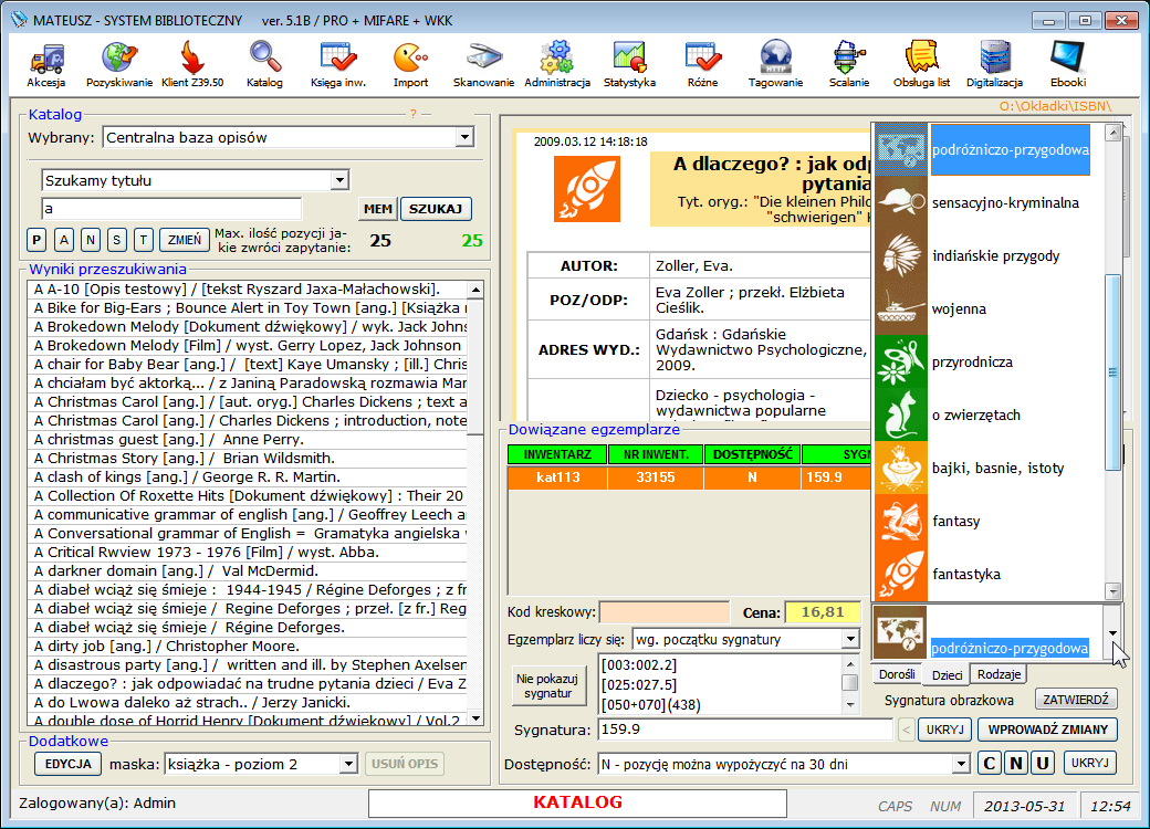 zachowaniem standardu MARC21, rejestracji wypożyczeń, prowadzenia i